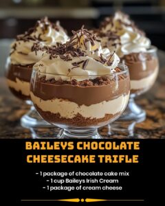 There’s something magical about the combination of creamy cheesecake, rich chocolate, and a hint of Irish cream. This Baileys Chocolate Cheesecake Trifle is not just a dessert; it’s an experience. Perfect for dinner parties, holiday gatherings, or even a cozy night in, this trifle is a showstopper that will leave your guests begging for the recipe.