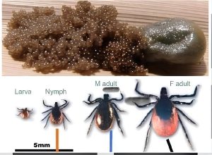 • Tick eggs hatch into larvae in a few weeks, posing a risk of tick bites and tick-borne diseases.