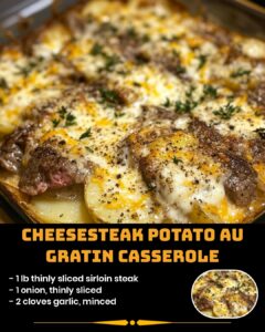 There’s something incredibly satisfying about a well-baked casserole, especially one that combines the rich, savory flavors of a cheesesteak with the creamy, comforting texture of au gratin potatoes. This Cheesesteak Potato Au Gratin Casserole is not just a meal—it’s an experience. Imagine layers of tender, thinly sliced potatoes, juicy steak, melted cheese, and a creamy sauce baked to golden perfection. This is a dish that warms the soul, making it perfect for family dinners, special occasions, or even a cozy night in. You’ll love how this recipe brings together the timeless flavor of a Philly cheesesteak in a warm, comforting casserole format.