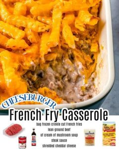 - Can I use fresh potatoes instead of frozen French fries? Yes, you can use fresh potatoes instead of frozen French fries. Simply peel and cut the potatoes into fries, then par-cook them before assembling the casserole. This will ensure they cook through evenly during baking.