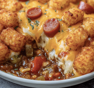 My husband couldn’t get enough of this Cheesy Hot Dog Tater Tot Casserole at our family dinner last night. It was the perfect comfort food dish that brought us all together and made the evening even more special.