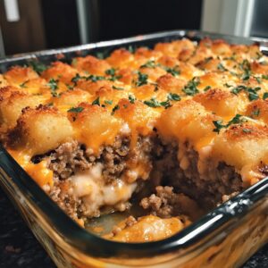 There’s something magical about recipes that combine simplicity with a burst of comforting flavors. Cheesy Tater Tot Meatloaf Casserole is a nostalgic dish that warms the soul and brings everyone to the table. This recipe is perfect for busy weeknights or weekend gatherings, blending the juicy savoriness of meatloaf with the irresistible crunch of cheesy tater tots. Whether it’s a family dinner or a casual get-together, this dish guarantees smiles, empty plates, and requests for seconds. Let’s dive into this culinary delight that’s bound to become a family favorite.