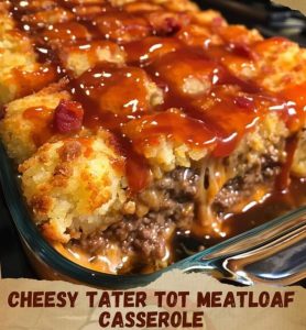 This Cheesy Tater Tot Meatloaf Casserole is more than just a meal; it’s an experience. With its rich, savory meatloaf base, sweet and tangy barbecue sauce, crispy tater tots, and gooey cheese, it’s sure to become a family favorite. Follow the tips and secrets provided to make this dish your own and achieve culinary perfection. Whether you’re making it for a family dinner, a potluck, or just to indulge in some comfort food, this casserole is bound to impress and satisfy. Happy cooking!
