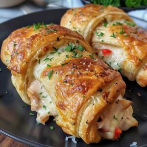 There’s something truly comforting about the aroma of freshly baked chicken-stuffed crescent rolls wafting through the kitchen. These golden, flaky crescents, filled with a creamy, cheesy chicken mixture, are the perfect balance of savory and indulgent. Whether you’re preparing them for a family dinner, a quick lunch, or a potluck, these rolls have a way of bringing people together. They’re not just delicious; they’re incredibly easy to make, making them a go-to recipe for busy weeknights. Let’s dive into this delightful recipe that’s sure to become a family favorite.