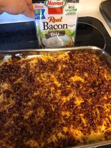 - Add Texture with Crunchy Toppings: Enhance the texture of the dish by adding crunchy toppings along with the bacon. Try sprinkling crispy fried onions, toasted breadcrumbs, or crushed tortilla chips over the cheese layer before adding the bacon.