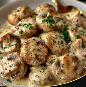 - Serve the dish hot and fresh to enjoy the best texture and flavor of the creamy sauce and tender mushrooms.
