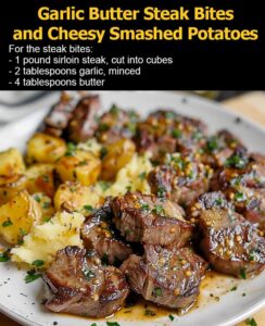Garlic Butter Steak Bites and Cheesy Smashed Potatoes are a delightful combination that promises to please your taste buds and provide a comforting dining experience. With simple, high-quality ingredients and a few cooking secrets, you can create a meal that’s both impressive and deeply satisfying. Enjoy this recipe as a go-to for cozy dinners and special occasions alike, and don’t forget to share your culinary success with family and friends!