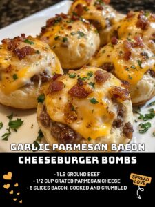 These Garlic Parmesan Bacon Cheeseburger Bombs are a fun, flavorful, and indulgent treat that’s perfect for any occasion. Whether you’re serving them as an appetizer, snack, or main dish, they’re sure to be a hit. Happy cooking!