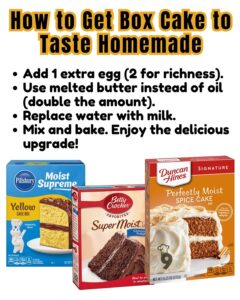 By following these tips and tricks, you can transform a simple boxed cake mix into a dessert that tastes homemade and delights everyone who tries it. Happy baking!