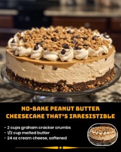 This No-Bake Peanut Butter Cheesecake is more than just a dessert; it’s an indulgent experience. Its creamy texture, balanced sweetness, and rich peanut butter flavor make it a show-stopper for any occasion. Whether you’re celebrating a special moment or simply treating yourself, this recipe promises to deliver smiles and satisfaction.