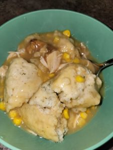 Chicken and dumplings. (This is how my mom used to make it for us)