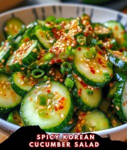 This Spicy Korean Cucumber Salad is a delightful way to introduce Korean flavors into your kitchen. With its refreshing crunch and bold, vibrant taste, it’s sure to become a favorite. Whether you’re new to Korean cuisine or a seasoned enthusiast, this salad is a wonderful addition to any meal. Enjoy the process of making it, and don’t be afraid to tweak the recipe to suit your personal preferences!